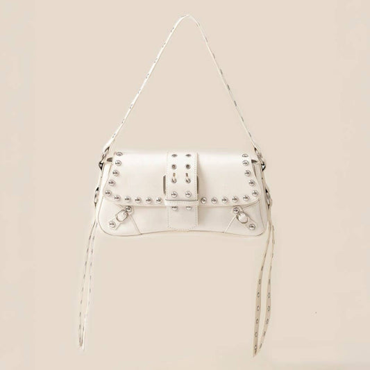 Metallic Sphere Studded Soft Hobo Shoulder Bag
