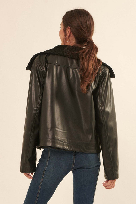 Dolores Sherpa Collar Vegan Leather Jacket