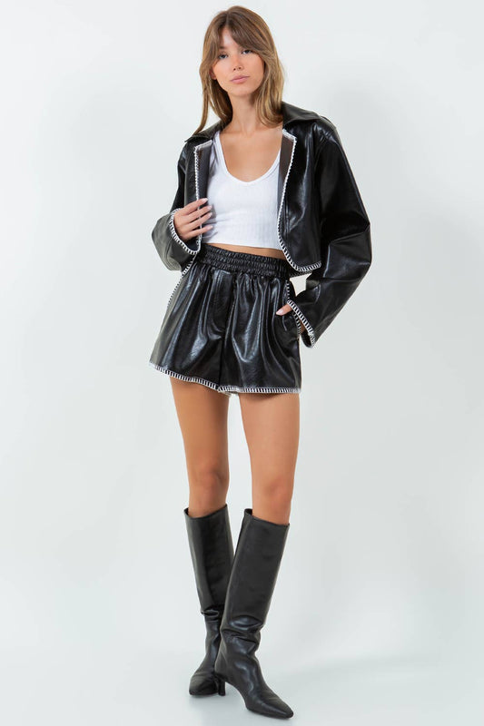 Foster Cropped Vegan Leather Jacket