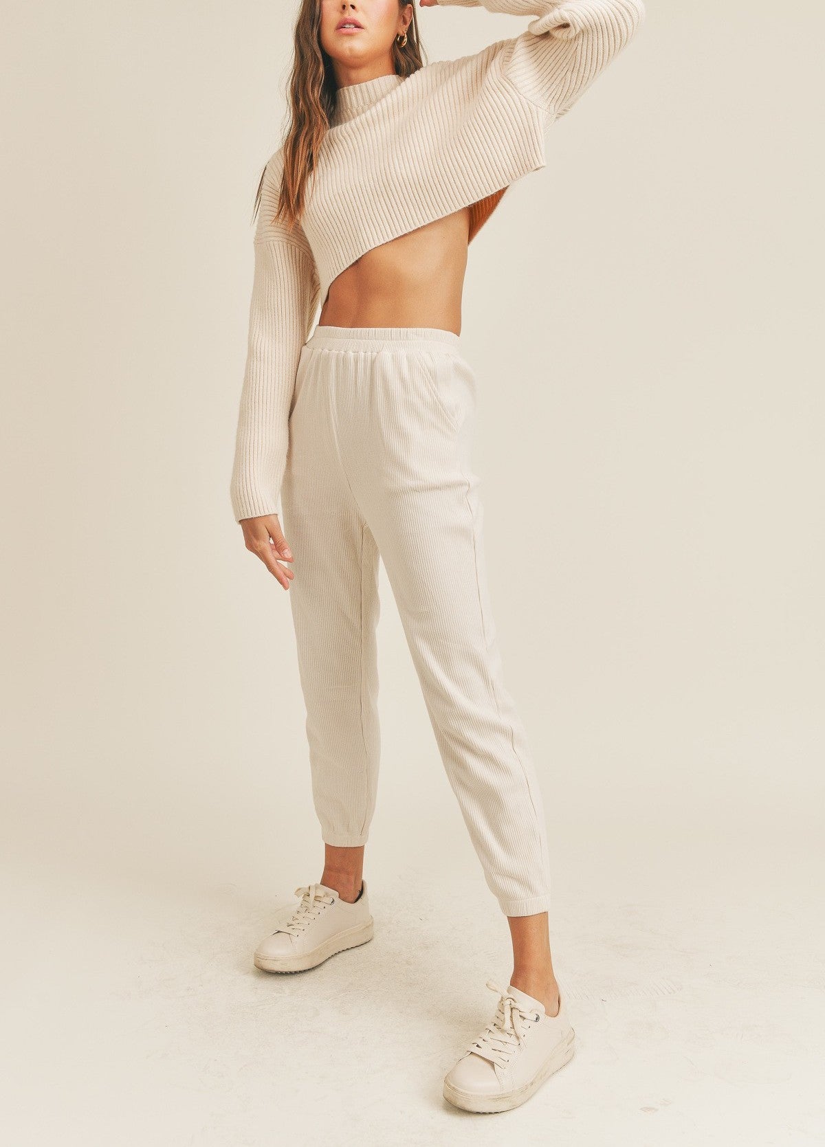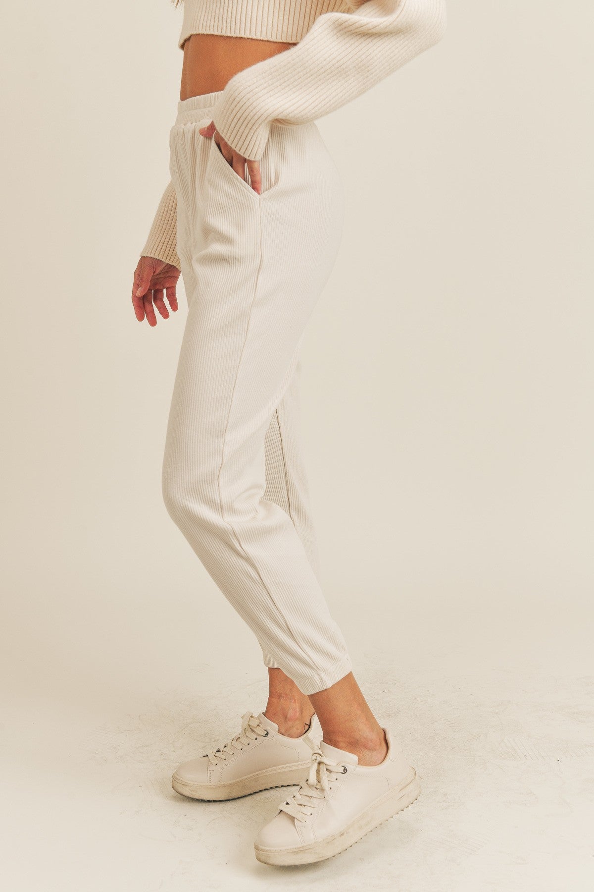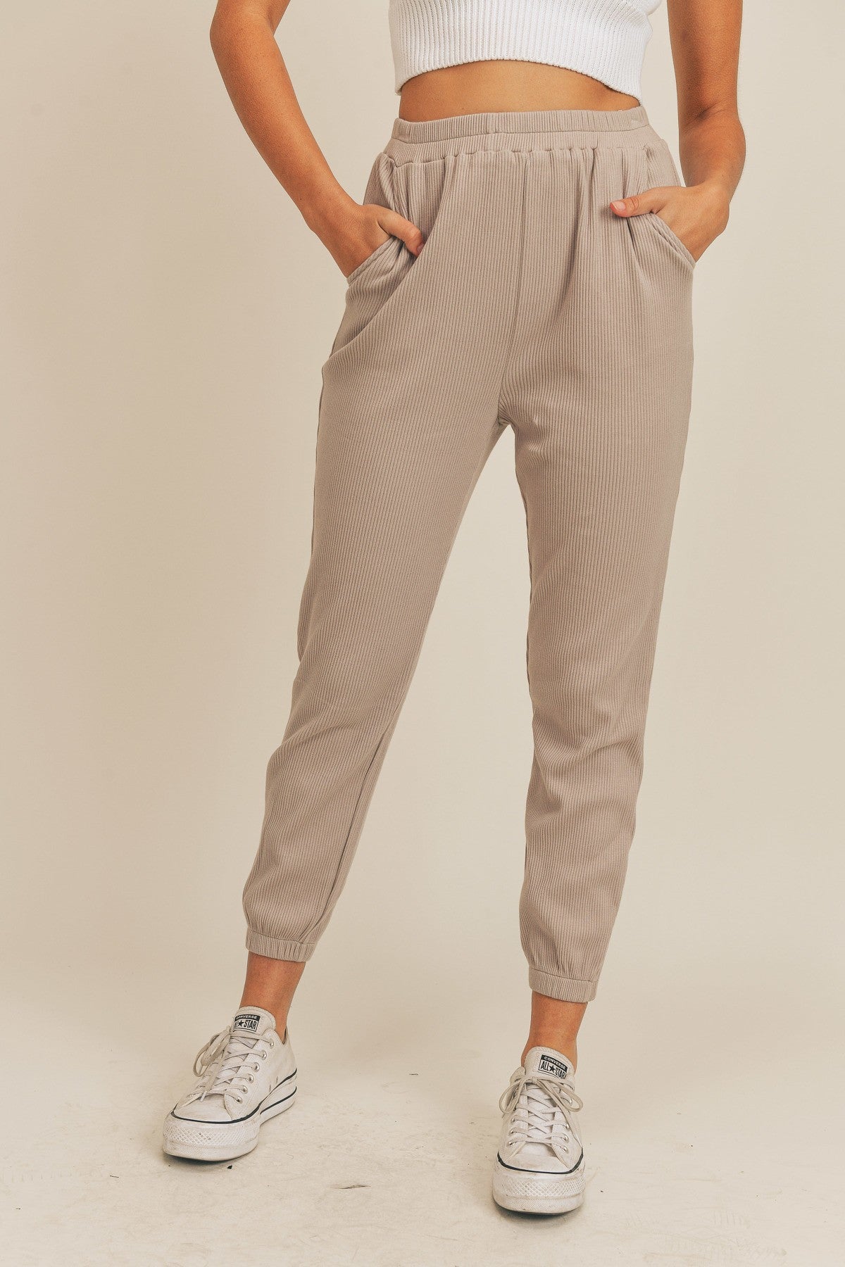 Stay comfortable and stylish with our Anita Knit Joggers. These corduroy-like knit jogger pants feature side pockets and an elastic waistband. Perfect for fall, these neutral-toned joggers are a must-have for your loungewear collection. Shop now!