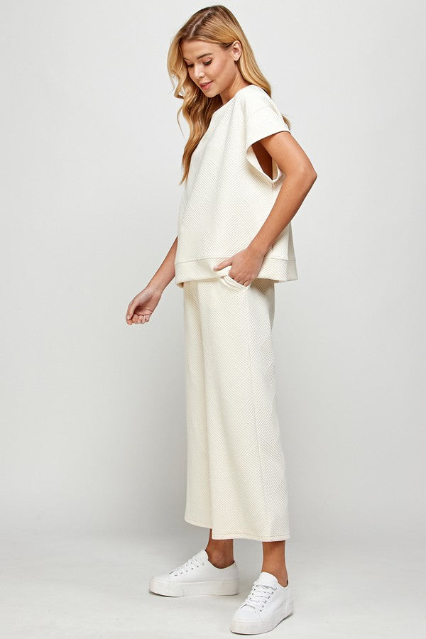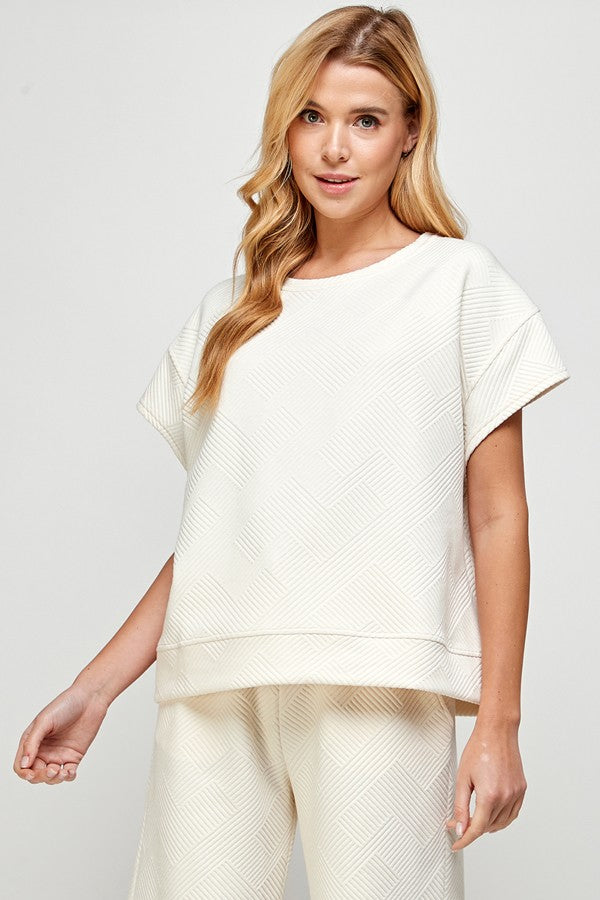 Elevate your loungewear game with the Annette Short Sleeve Sweatshirt. Complete the look with the matching Annette Cropped Wide Leg Sweatpants. Perfect for fall, this women's sweatshirt is a must-have for a comfy yet stylish outfit.