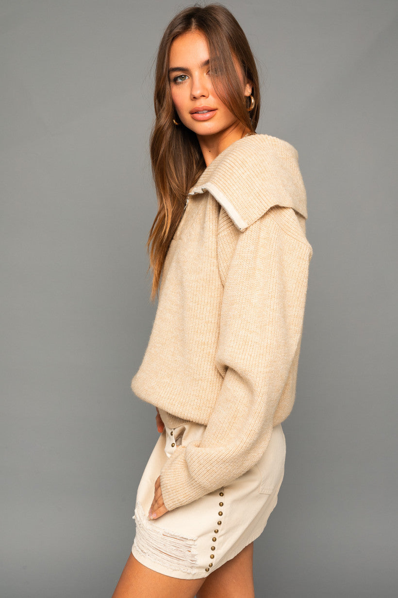 Belinda Half Zip Fold Over Sweater