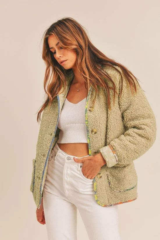 Snuggle up in style with the Betty Sherpa Fleece Jacket—the perfect blend of cozy comfort and playful retro design. This jacket is guaranteed to bring warmth and a pop of color to your outerwear collection.