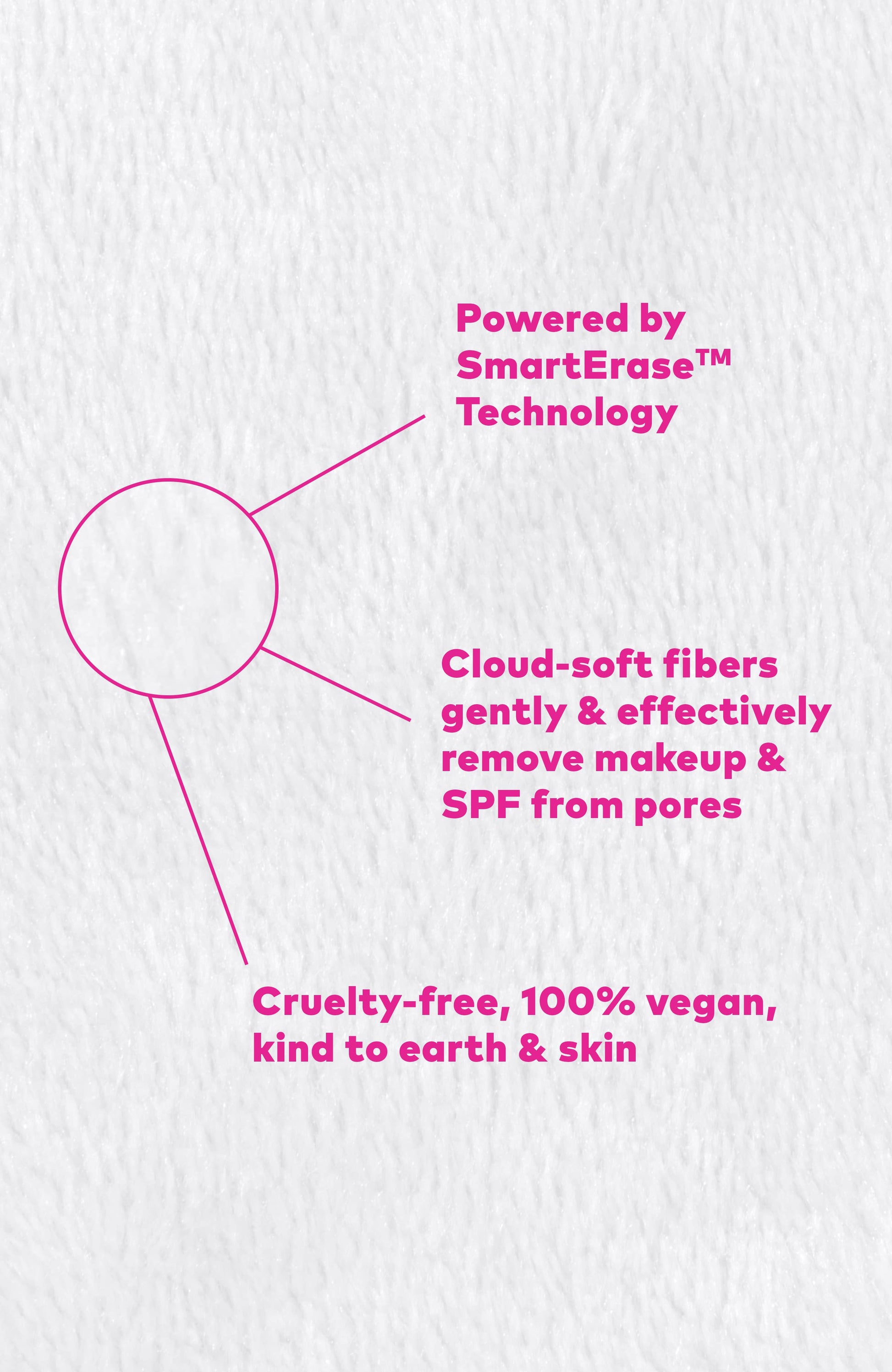 The Original MakeUp Eraser® removes makeup 2.5X better than the leading makeup wipe is non-irritating & non-drying, making it perfect for sensitive skin. It's safe for eyelash extensions & oil-free, perfecting your sustainable beauty routine. Wet cloth with warm water. Use gentle circular motions to erase makeup & flip to the other side to exfoliate the skin Machine wash & dry. Dryer sheet & fabric softener safe.