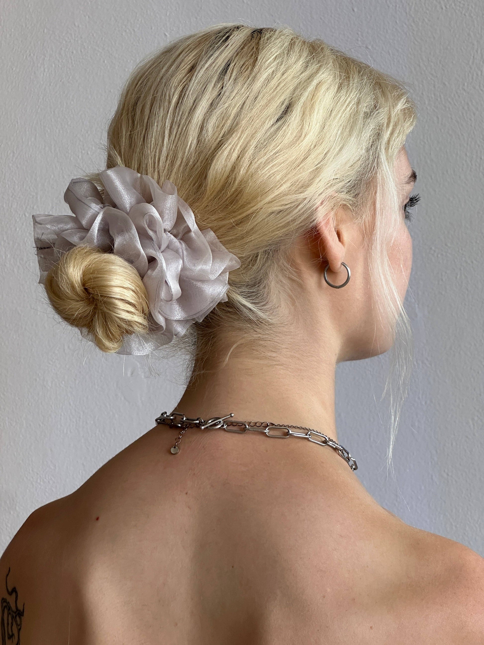 Dramatic Ruffle Silhouette: Crafted to the same grand proportions as the Giant Cloud Scrunchie, this piece ensures a beautiful, full ruffle silhouette even when secured.