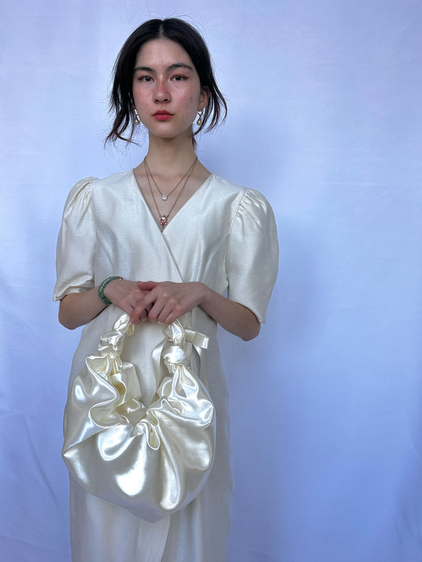 Satin Knotted Bag, Croissant Bag, Room Shop Bag, Knotted Shoulder Bag, Unique Satin Handbag, Elasticized Closure Bag, Philly Made Bag, Artisan Shoulder Bag, Pillow Bag, Satin Knot Purse, Made in USA Bag, Trendy Croissant Purse