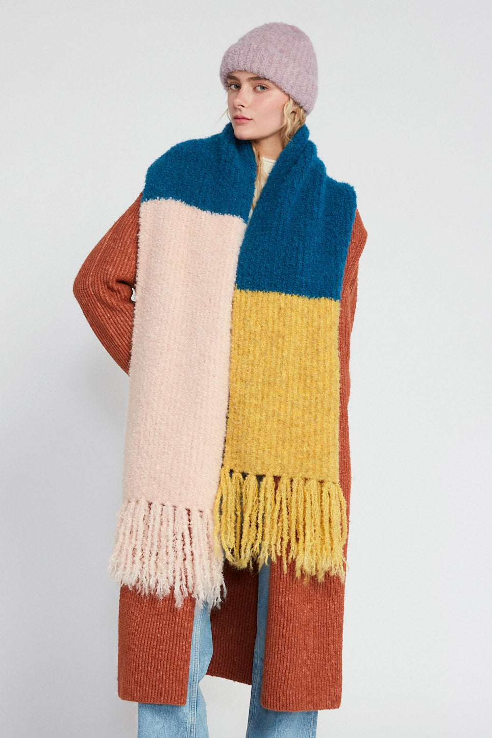 Wrap yourself in style with Look By M Fuzzy Color Block Scarf. Soft blend of wool and acrylic, perfect for fall.